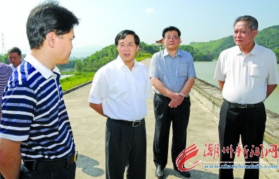 许光一行实地检查了潮安县登塘镇大坑水库和古巷镇寨后山山体滑坡现场,并召开座谈会部署抗灾复产工作。据了解,强台风“尤特”带来的持续性暴雨使大坑水库录得420毫米的降雨量,水库水位迅速逼近汛限水位,但由于及时实施了水位调控,提前泄洪,科学调度,该水库没有出现险情。对此,许光予以肯定,并要求继续加强对水库的日常管理,确保水库安全运行。古巷镇寨后山受台风“尤特”、“潭美”带来的强降水影响,于17日、22日两次发生山体滑坡险情,导致镇文化活动中心健身广场部分体育设施以及附近企业一批木材被埋。险情发生后,该镇立即叫停附近企业、铺户,组织人员撤离,并设置警戒线,严禁一切人员进入。对此,许光要求有关部门立即整治,并加大对灾害隐患的排查力度,严防次生灾害的发生。