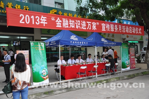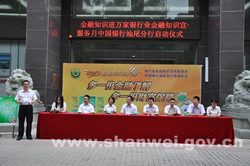 由人行汕尾市中心支行与汕尾银监分局组织、各银行业金融机构参与的“金融知识进万家宣传服务月”和“金融知识普及宣传月”活动于9月1日启动。市政府党组成员王世顶出席活动。 据了解,本次活动将持续一个月,通过向公众介绍银行业金融基础知识,引导社会公众科学合理使用银行产品和服务,提升消费者保障自身资金财产安全的意识和能力。活动重点围绕个人贷款、信用卡、借记卡、银行理财、电子银行、自助设备、代销业务、非法集资等八项内容进行宣传讲解。另外,活动还增加了防范电信诈骗、安全使用ATM机以及银行投诉处理流程等宣传内容。(记者 卓科荣 摄影 唐广源)