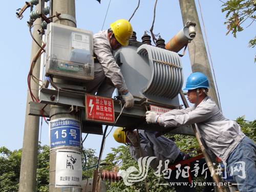 7月份,揭东用电量创单月新高。为保证供电安全,揭东供电局组织广大员工紧急对辖区供电设施进行增容改造,确保迎峰度夏可靠供电。通讯员 摄