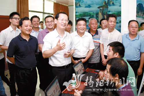 走进锡场镇军埔村,陈绿平先后实地调研了电商服务中心、华尔美电商网批小商品城、电商培训中心和龙人服饰有限公司,详细了解该村在服务青年网商发展,打造电商区域品牌,培养电商人才等方面的做法和思路。陈绿平要求揭东区和锡场镇以及各有关部门一定要加强引导,做好服务,把军埔村打造成为全国电商高地,推动全民创业,促进充分就业。要把信用作为生命线来维护,大力发展电子商务,让揭货走向世界;同时通过电子商务开拓市场,促进消费,让广大创业者都能做大做强做优,涌现出更多的电商巨头。