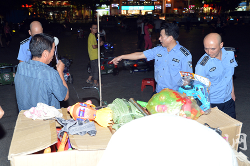 11日晚,该局组织70多名执法人员在市区临江南路、临江北路等路段,对沿路人行道占道摆卖、乱停车辆等违章行为进行清理整治,并耐心细致地教育劝导违章者,让他们主动改正违章行为,在开展整治工作的同时,做好“创文”迎检环境综合整治宣传工作,调动各方力量,积极营造整洁有序的市容环境(见图。涂英鹏 摄)。