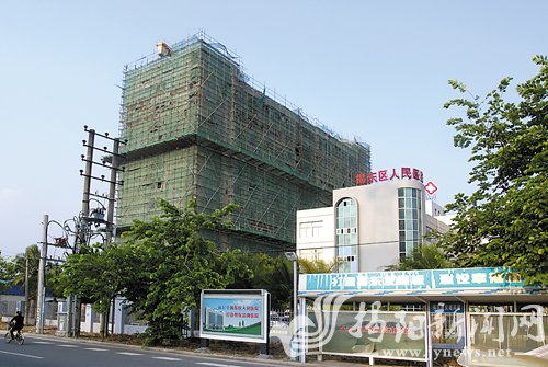 揭东区人民医院住院综合大楼建设项目,是该区医疗卫生基础项目建设的重中之重。该项目总投资3380万元,楼高12层,建筑面积约1.6万平方米。项目自2012年9月开工以来,工人们克服恶劣天气等不利条件的影响,加班加点,以确保工程能按期竣工、交付使用。