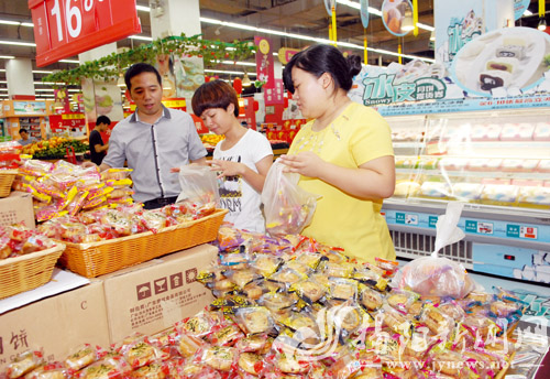 随着一年一度的中秋佳节即将到来,市区各大超市、食品专卖店洋溢着浓浓的节日气氛,琳琅满目、种类繁多的各式月饼被摆放在店面最显眼的位置,其中,味道鲜美、价格便宜的简装月饼最受市民青睐。