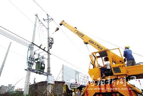 揭阳供电局派出一支200人的工程队赶赴惠来帮助抢修线路,争取县城和镇区于今晚基本实现通电。卢泽鸿 摄
