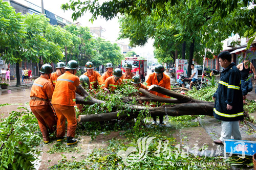 灾后第一天,揭西县消防官兵迅速出动,清理被狂风折断的树木,及时还路于民。李维照 摄