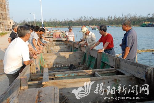 靖海镇南外村渔民正在修复因灾受损渔船。郑楚藩 摄