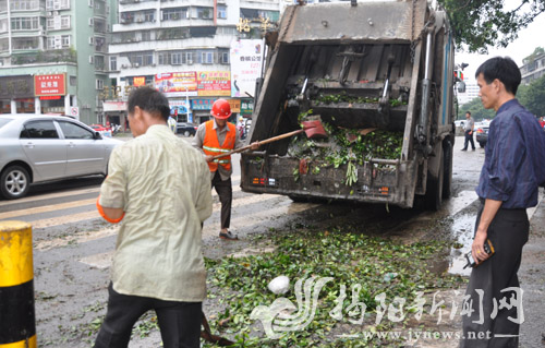 榕城区环卫、建设、执法、消防等部门发挥主力军作用,及时清除城区堆积淤泥和垃圾,迅速恢复正常生产生活秩序。至25日晚,榕城区环卫局共出动人员2400多人次,出动大型机械、环卫设备70多台,清运泥沙、淤泥和垃圾杂物4200多吨,市区主要道路基本清理完成,正集中力量清理居民区、城中村、低洼地垃圾杂物,城区灾后环境面貌基本恢复(见图。陈炳鑫 摄)。榕城执法分局、东山执法分局共出动车辆36辆次,出动人员170人次,清理垃圾、破损广告牌60多车。榕城区建设局组织专业人员50人,紧急调配大型专业机械35台,出动运输车200多车次,在区消防大队、市园林管理处、市消防特勤中队的支援下,全力清理榕华大道、进贤门大道、揭丰公路等各大主干道和重点受灾路段路面污泥和垃圾,至24日晚基本完成主干道清障工作,保障道路畅通。