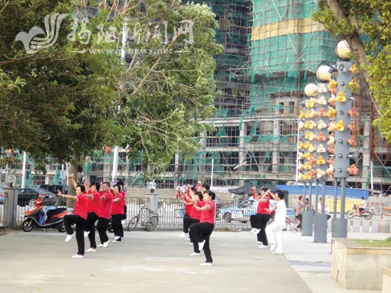 遭受强台风“天兔”重创的惠来县已逐渐消除灾痕,群众的生产生活恢复正常。图为市民在慈云文化广场开展丰富多彩的健身运动。林志鹏 陈 锋 摄