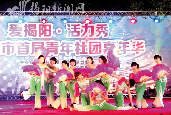 昨晚,市区青年文化广场热闹喧腾,由团市委等单位举办的“爱揭阳·活力秀”市首届青年社团嘉年华文艺晚会在此举行,市幸福星志愿者服务队、市星火义工协会等青年社团代表轮番上台献艺,与台下观众共贺国庆节的到来。活动由团市委主办,市原创音乐舞蹈协会承办,旨在贯彻落实市委五届五次全会精神,为全市青年社会组织打造展示才艺的平台,引领广大青年为建设粤东经济强市和粤东上善之区贡献青春正能量。市幸福星志愿者服务队、市原创音乐舞蹈协会、舞蹈世界艺术团、星火义工协会等青年社团组织均选派优秀节目参加演出。活动节目丰富多彩,包括歌唱、民族舞、二胡演奏、肚皮舞、手语表演、武术表演等,选手们用歌声和舞蹈表达出对祖国的热爱之情,充分展示了我市青年积极进取、蓬勃向上的良好精神风貌。