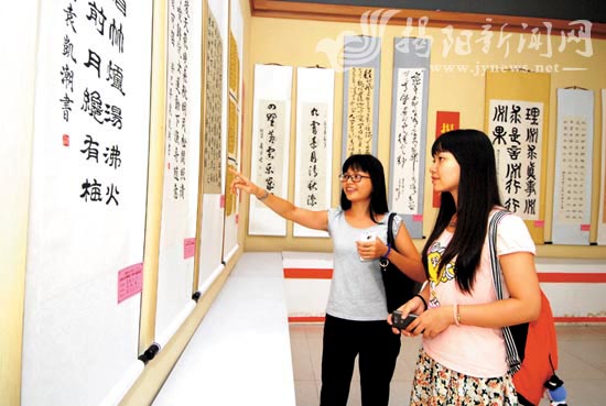 市民在揭阳楼文化广场参观书画展。卢泽鸿 摄