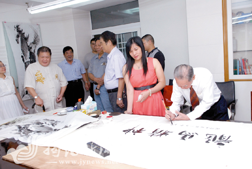 国级书画家与揭阳书画爱好者现场切磋交流书画创作。郑楚藩 摄