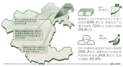 据了解,原揭东县撤县设区后,揭阳市区规模从原来的181平方公里增加到1031平方公里,扩大了5.6倍。而借中心城区扩容提质契机,今年上半年,揭阳主要经济指标保持快速增长态势,GDP增速列全省第2位,固定资产投资增速位列全省第4位。