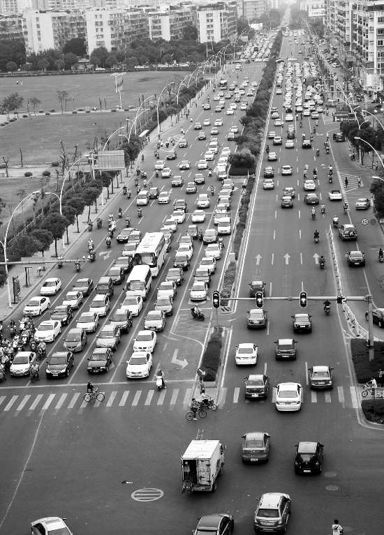 记者看到,中山东路虽然宽敞,但中山—华山路口红灯亮起时,等待红灯的车辆依然绵延至海滨路口,整个路段像偌大的停车场,黑压压的一望下去全是车。即使绿灯放行,车速也很缓慢。记者留意着汽车的速度表,发现从中山—海滨路口开始至华山路口,速度表的指针基本没有超过20公里/小时。