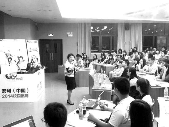 本报讯 10月14日,安利公司在汕头大学举办2014管理培训生校园宣讲会(如图)。除了邀请该公司多位经理人现身说法,还大打“亲情牌”,邀请了汕头大学硕士毕业的员工,介绍在安利多姿多彩的工作与生活经历,给师弟师妹支招。