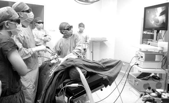 本报讯(记者 邓丹丹 摄影报道) 《阿凡达》、《少年派的奇幻漂流》让大家领略到3D电影无与伦比的逼真震撼效果,如今,3D立体视觉技术也应用在临床医学当中。本月15日,汕大医学院第二附属医院微创医学中心陈耿臻主任医师带领他的手术团队首次利用3D高清腹腔镜技术,成功为病患实施手术,开创了粤东医疗界3D腹腔镜手术先河。