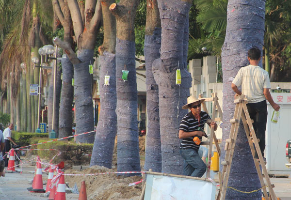 本报讯 记者黄鸿华摄影报道: 强台风“天兔”,给我市树木等绿化设施造成巨大破坏,市区的几大公园也不能幸免。灾后,各公园抓紧时间消除灾痕,恢复原有环境。近日,记者就从华侨公园获悉,公园门前广场将陆续新移植14株桃花心木,并在两侧建设隔离花圃,提升公园外围绿化环境。
