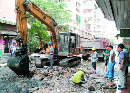 商业街是老市区一条重要的市政道路,连接着外马路和跃进路,长283米,宽12米,周边有500户住户,人口2000多人,附近还有友联中学。由于使用年限过久,这条道路坑坑洼洼,破损严重,尤其是下水道管网老化,一到下雨就积水,在台风“天兔”来袭时,这条路积水达到1米左右,居民和学生出入十分不便。今年,金平区将商业街改造列入了本年度市政道路改造计划。今年10月1日,商业街改造启动。昨天下午,记者随同专项督查的金平区人大代表在现场看到,工人们正紧张地进行施工,下水道已经开挖完毕。施工方介绍,原来商业街下水道管网采用的是排水方沟,表面粗糙,容易淤塞垃圾,清理也十分不易。改造后将改铺直径700毫米的中空波纹管,解决积水问题,同时加设沉沙井,更方便清理。届时路面将全部铺设混凝土,市民行路更加平坦。预计该道路将在侨博举办前完工。