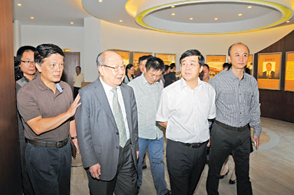 在市领导许光、张帆、余鸿纯的陪同下,陈伟南先生参观了位于笔架山南侧山上的陈伟南天文馆。该馆分三层,一层为德勋陈列馆,通过系列的文字图片、实物等,真实生动地记录和展现了陈伟南先生的求学、创业历程;二层为星晖馆,采用先进的光电技术,将浩瀚太空中的“潮州星”、“陈伟南星”和“饶宗颐星”的模拟动画展示给观众;顶层为天文观测台,由专业机构设计并安装天文科普望远镜。据了解,陈伟南天文馆将成为韩山师院和我市一个高品位科普教育基地,不仅可为韩山师院师生提供仰望星空、探索宇宙的平台,也将成为向潮州市民和中小学生普及天文学知识的重要场所。