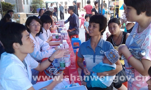 18日汕尾市妇幼保健院在汕尾城区捷胜镇捷胜卫生院门口举行大型义诊活动,医院专家全天接受市民的咨询。上午8点30分不到,活动尚未正式开始,就已经大批周边居民排队等候,上午就有近300名市民前来咨询。 据介绍,为积极参与此次“服务百姓健康行动”, 汕尾市妇幼保健院除举行义诊外,还组织了专题科普知识讲座及社区健康宣教活动,对这次义诊中,群众给予了高度评价,表示通过细致深入的咨询,学习到不少防病治病的知识。(记者 唐广源 文/图)