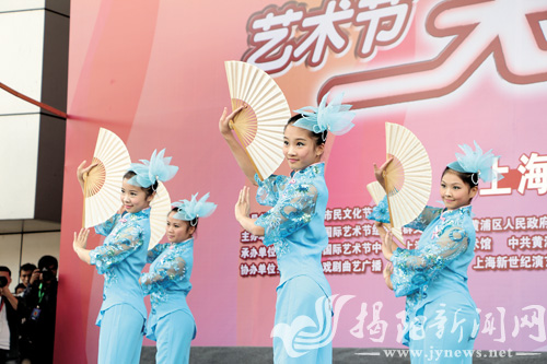 我市小梅花潮剧艺术培训中心新编创的戏曲舞蹈《扇舞》,聘请上海戏剧学院教师张苗苗常年执导,通过半年的辛勤排练,艺术质量大大提高,经过多轮的角逐筛选,节目终于入选第十五届中国上海国际艺术节,于本月22日在上海南京路世纪广场献演。