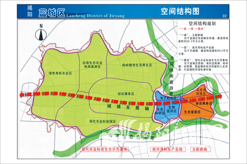 现代农业科技生态示范基地依托龙尾、桂岭、白塔、霖磐的自然风貌和人文资源,体现错位发展原则,守住生态环境这一底线。示范基地将大力发展现代农业观光、农业科技示范园、现代农业体验园及滨河休闲产业,打造我市绿色增长极。其中,桂岭镇依托良好自然资源,规划一批医疗养生机构,打造都市休闲养生区;白塔镇以生态农业休闲游开发为主,包括旅游服务、民俗风情体验等,打造生态农业休闲旅游区;龙尾镇以特色农业规模化种养、农产品加工、农业装备制造业为主,打造绿色有机农业区;霖磐镇紧邻榕江南河,发展花卉苗木培育、设施农业等,打造现代农业科技园区。