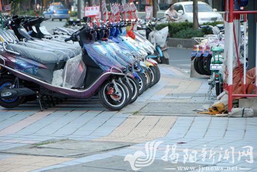 按照国家规定,道路上的盲道任何单位和个人都不能随意占用和阻挡。但是记者体验盲人出行发现,市区多条主干道的盲道变成“忙道”,行走堪称“步步惊心”。在榕华大道、临江北路的人行道上,不少路段被当成停车场,店铺前小汽车、摩托车、电动车等横跨着盲道停放;部分路段盲道上的地砖翘了起来,路面凹凸不平。而在同德路的人行道上,崭新的摩托车、电动车被整齐地排放成2排,中间黄色的盲道成为过往行人的唯一通道。在进贤门大道中段,同样出现占道经营的现象,一位自行车修理商贩把摊位设在盲道上做起了生意。