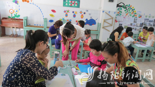近期,省妇女维权与信息服务站(揭阳站)和市妇联第一幼儿园联合开展“亲子游艺”小组活动,内容丰富多彩,通过音乐、美工、阅读、游戏等,促进了亲子有效沟通,增进了亲子良好关系。图为小朋友和家长们在专心致志地做美工。贺丹 摄