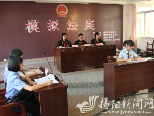 市女法官协会负责人表示,在我市初中学校开展“模拟法庭”活动,既是以实际行动践行“为大局服务,为人民司法”,也是法院干警职业素养和精神风貌的展示,更是构建法治揭阳的有益实践。通过举办该项活动,使广大青少年学生在亲身体验法院庭审过程中学习到法律知识,增强法制观念,从而达到教育学生学法、知法、守法、用法的目的。