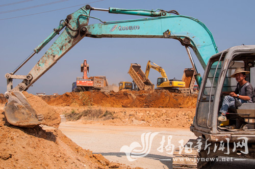 揭东开发区新型工业园全速推进各项建设。图为一台台大型机械正开足马力平整土地。