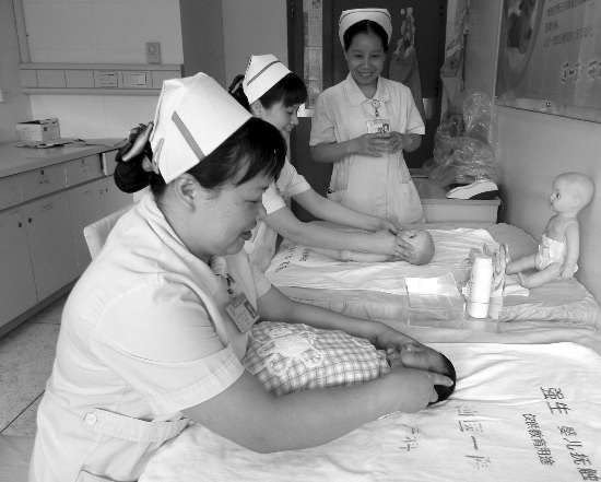 本报讯(记者 邓丹丹 摄影报道)记者采访了解到,目前我市已有1000多名持证的“婴儿抚触师”,他们大都是各医院的专业医护人员,经考试合格后持证上岗,开展规范的婴儿抚触技术项目。