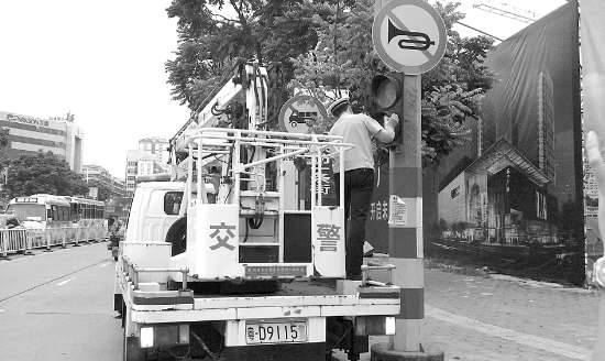 本报讯(记者 刘婉萍 摄影报道) 目前市区各交警大队全力投入到道路交通安全保卫工作中,加强路面巡逻,确保道路畅顺。同时,从10月起,交警部门对海滨路、金砂路、中山东路、泰山路、长平路等路段的交通标线进行翻新,面积约5000平方米。为配合汕揭高速公路泰山出入口的顺利通车,交警部门还对出口的海河路段、龙江路段、汕樟路段等进行交通配套设施设置(如图),增设大型汕揭高速公路交通指路标志7座,设置信号灯路口3个,完善交通标志标线一大批。