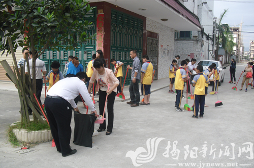 为提升学生文明道德素养,将文明道德思想和文明道德行为延伸到家庭和社会,深入推进创建文明县城工作,近日,揭西县河婆街道宝塔实验学校举行“小手牵大手,共建美好家园”签名活动,并深入社区清扫街道、发放活动倡议书,倡导生态文明,共创美好家园(见上图。通讯员 摄)。