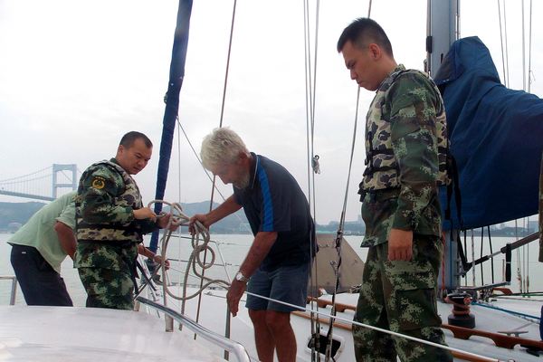 当天下午3时许,妈屿边防派出所的官兵驾艇在汕头港海域执行巡逻任务时,发现了这名“闯入国境”的老外。了解情况后,官兵们立即联系边检部门为其办理了签证入境手续,并及时调来附近的渔船合力将帆船拖回码头,找来老船工为其维修帆船。期间,边防官兵与当地热心渔民给詹姆斯送上了油料、干粮、饮用水等补给,帮助他尽快出海返航。