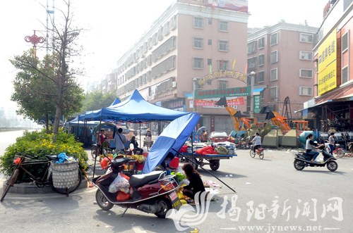 近日,记者在走访市区西关路、淡浦路、马牙路等多个路段、路口时,发现占道经营的商贩、乱停乱放的车辆使道路交通拥挤堵塞,蔬果摊贩乱丢乱倒的垃圾、乱搭乱建的建筑物也严重影响市容环境(见图。涂英鹏 摄)。