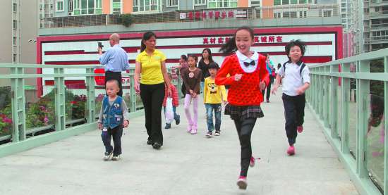 昨天,记者来到天桥上看到,主桥两侧护栏使用通透的材质,还设置LED灯摆放上鲜花,整座天桥显得十分时尚、漂亮。天桥上行人熙熙攘攘,由于设置了斜坡,骑单车的市民也可以很方便地将单车推上天桥过马路。 本报记者 黄鸿华 摄