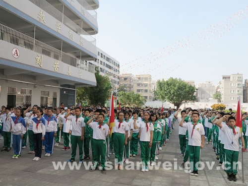 11月7日上午,市实验小学举行红领巾志愿服务队成立仪式。市教育局副局长施铝、团市委副书记刘素洁、该校副校长王其文分别致辞;仪式由该校副校长罗华鸿主持。学校志愿辅导员和红领巾志愿者共500多人参加仪式。 此支志愿队的成立旨在推动学雷锋活动常态化、组织化,增强志愿活动效果,培养少先队员的责任感和主人翁意识。 仪式结束后,身穿志愿者服装、戴着红领巾的小志愿者们拿着扫把、畚箕等专用工具,前往市区城南路义务打扫环境卫生,清理街道两边的“牛皮癣”广告和垃圾。过程中,每位小志愿者牢记了自己的义务,增强了劳动意识和社会责任感,更充分展示了当代红领巾的风采。 据了解,一直以来,市实验小学少先队一直秉承“奉献他人、提升自我”的志愿服务理念,积极开展一系列志愿服务活动,在扶贫济困、关爱弱势群体、改善城市环境卫生等方面发挥了先锋模范作用,从而促进汕尾市志愿服务事业蓬勃发展。(记者 唐广源 通讯员 罗华鸿 蔡静慧 摄影 唐广源)