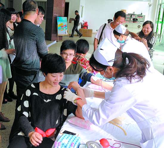 今天上午,龙湖区机关干部在翰苑举行无偿献血活动,区公安分局、地税局干部和区妇产医院、泌尿科医院员工近百人参加了无偿献血。 马卡 摄