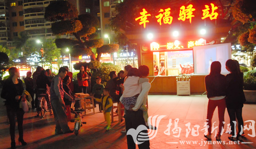 13日晚,市民散步至市区电力花园前“幸福驿站”时,都不约而同停下脚步,驻足观看正在这里播放的影片《中华德育故事》。据悉,这是由团市委和市志愿者协会组织的一项“传统文化宣讲”志愿服务活动。