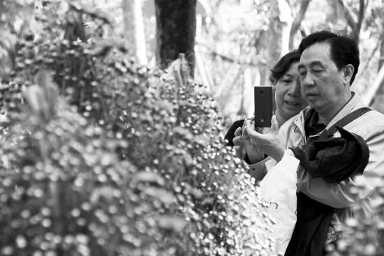 昨天,中山公园管理人员正忙着在园区各个角落布置各品种菊花。一盆盆含苞待放的菊花刚一摆定,立即有市民“抢鲜”一睹芳容,上前欣赏拍照、俯首闻香,好不惬意。在园区大舞台上,由1500盆一串红、万寿菊组成的“党旗”, 红黄相间的图案看来鲜艳夺目,人气颇高,游客们争相合影留念。