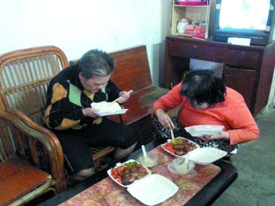 17日中午11点多,记者跟随蓝天义工到光华路的李金喜家回访时,受义工订餐委托的快餐店员正好把午餐送到李家。牛肉丸、煎鸡蛋、炒青椒,香味扑鼻,让人垂涎。得知李金喜的女儿一直渴望尝尝炸鸡柳的味道,义工还特地叮嘱快餐店平时尽量多配送鸡柳、鸡翅,给这个正在长身体的孩子增加点营养。