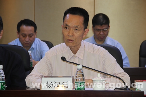 图为广东省地方税收研究会副会长杨汉廷在会上发言