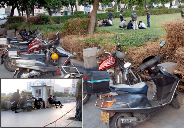 在人民广场入口处,记者也了解到,今年5月,有一个物业单位经有关部门审批同意在该片区设置了停车场,但服务时间是下午4时到深夜1时,上午没有提供寄车服务。“那为什么寄车服务时间不延伸到上午呢?”,面对记者询问,当班的车场保安员告诉记者,首先是收费服务时间有明确规定,他们不能随便延伸为“全天候”。其次,并非所有车主都愿意掏钱寄车,他指指身旁的收费寄车停放处,只有寥寥几辆车,而不远处的免费停放区,则是一长溜的摩托车。