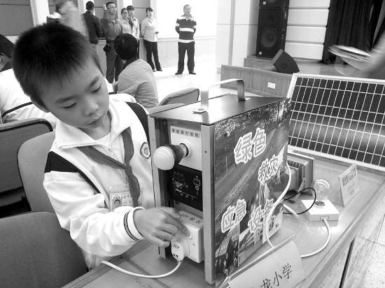据了解,金平区是全国科普示范区,每年一届的“金平区青少年科技创新大赛”为中小学生科技创新活动提供了一个交流平台。此次比赛共有27所中小学校参加。学生们通过对日常生活细微的观察,设计制造出具有一定科学性、新鲜性、实用性的科技作品。记者采访发现,很多学生的作品都涉及当前社会热点问题。灾害来临时停电怎么办?金龙小学五年级的刘键霆萌发了利用太阳能制作“绿色救灾应急设备”的想法,他通过太阳能板将太阳光转化为电,给电池充电并储存,在需要时电池电能就可以提供给设备使用,既环保又实用。