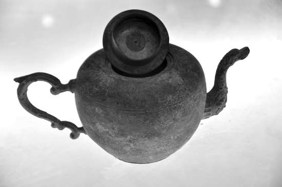 在一楼展厅中,刻有“汕头颜进记出品”字样的锡壶工艺十分精湛,让人惊叹。王宏强介绍说,这个锡壶已有近百年的历史,和陈列的咖啡壶等餐具一样,底部的印鉴为“颜进记”、“颜振兴”,产自颜氏分支铺号的作坊。这些锡制品与汕头老市区的“打锡街”有着千丝万缕的联系。他们曾寻访到颜氏后人,得知这些锡餐具均为正品,距今近百年历史。然而,由于时代变迁等原因,颜氏家族再也没有制造类似的锡餐具,因此,这些工艺精湛的锡餐具,可以说几乎成了“绝唱”。