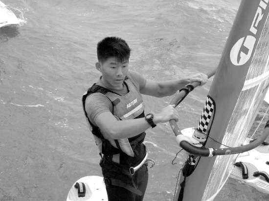 昨天,亚洲帆板锦标赛赛罢五轮,汕头选手黄鸿暂列第一,林瑞英、张洁莫暂列第二,羊杰暂列第六。图为黄鸿在比赛中。 陈文波 摄