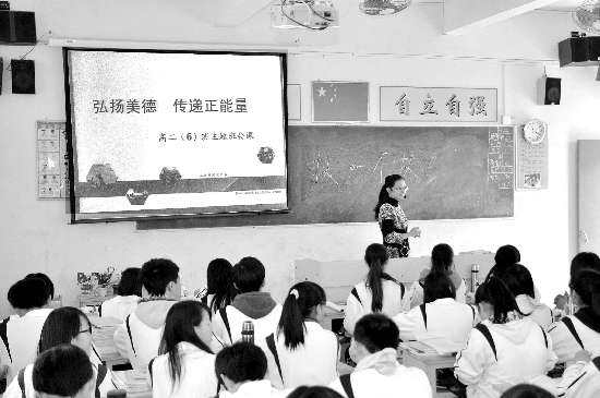 学校正在举行“弘扬美德,传递正能量”课程。 本报记者 袁笙 摄