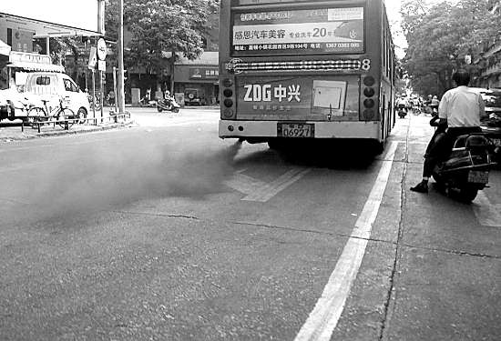 进入秋冬季节,许多市民对各地出现的雾霾天气都十分关心。近日有市民投诉说,虽然媒体多次曝光,但市区一些机动车尾气污染现象依然明显:使用柴油的大型集装箱货柜车、小货车加速时冒出的黑烟十分呛人,部分公交车尾气污染看起来依然严重 ,不但一些老旧的公交车一路喷吐黑烟成了“墨鱼车”,就连一些看起来很新的公交车也有冒黑烟的现象 ,令路人无奈掩鼻,公交车尾气污染似乎成为城市主要的大气污染之一。记者调查发现,除了在市区行驶的公交车外,行驶于中心城区与周边区镇的中巴也存在较严重的尾气污染。