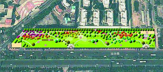 据了解,汕汾路西侧(嵩山路-市疾控中心)带状绿化公园项目设计建设宽度50米、长度400米的绿化带,总绿化面积约20000平方米,将根据地形起伏变化配置植物,种植凤凰木、樟树、桂花、红车、红珊瑚、龙船花、蜘蛛兰、台湾草等。根据设计,汕汾路带状绿化公园还将在与附近小区交界处种植成排落羽杉,形成一面“养眼”的绿墙。同时设置一条宽度1.5米的环形园林景观小径,并布置几个连接小径的小广场供行人休息、观景;园内配套卫生间、管理间、花架、功能照明等设施。