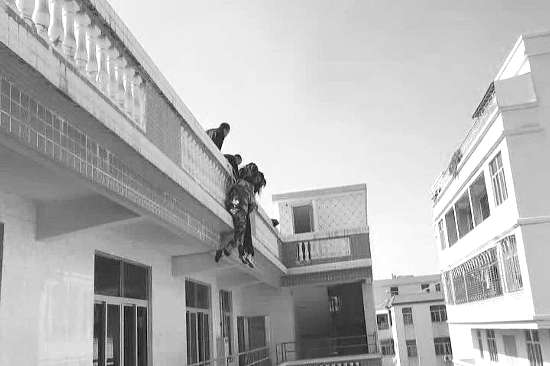 本报讯(记者林子海 林鹏 摄影报道) 前天上午,因为工资纠纷,潮阳区谷饶镇一名妇女攀爬上厂房5楼楼顶意欲轻生,接到报警后,潮阳消防官兵迅速到场救援,最终安全解救了该名“轻生女”。