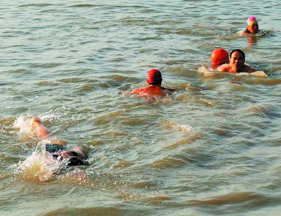 每天清晨,当许多人还蜷缩在暖洋洋的被窝中时,汕头冬泳爱好者早已在冰冷的海水中拉开了一天的序幕。图为今天一大早,冬泳爱好者在海边游泳。本报记者 张烈华 摄